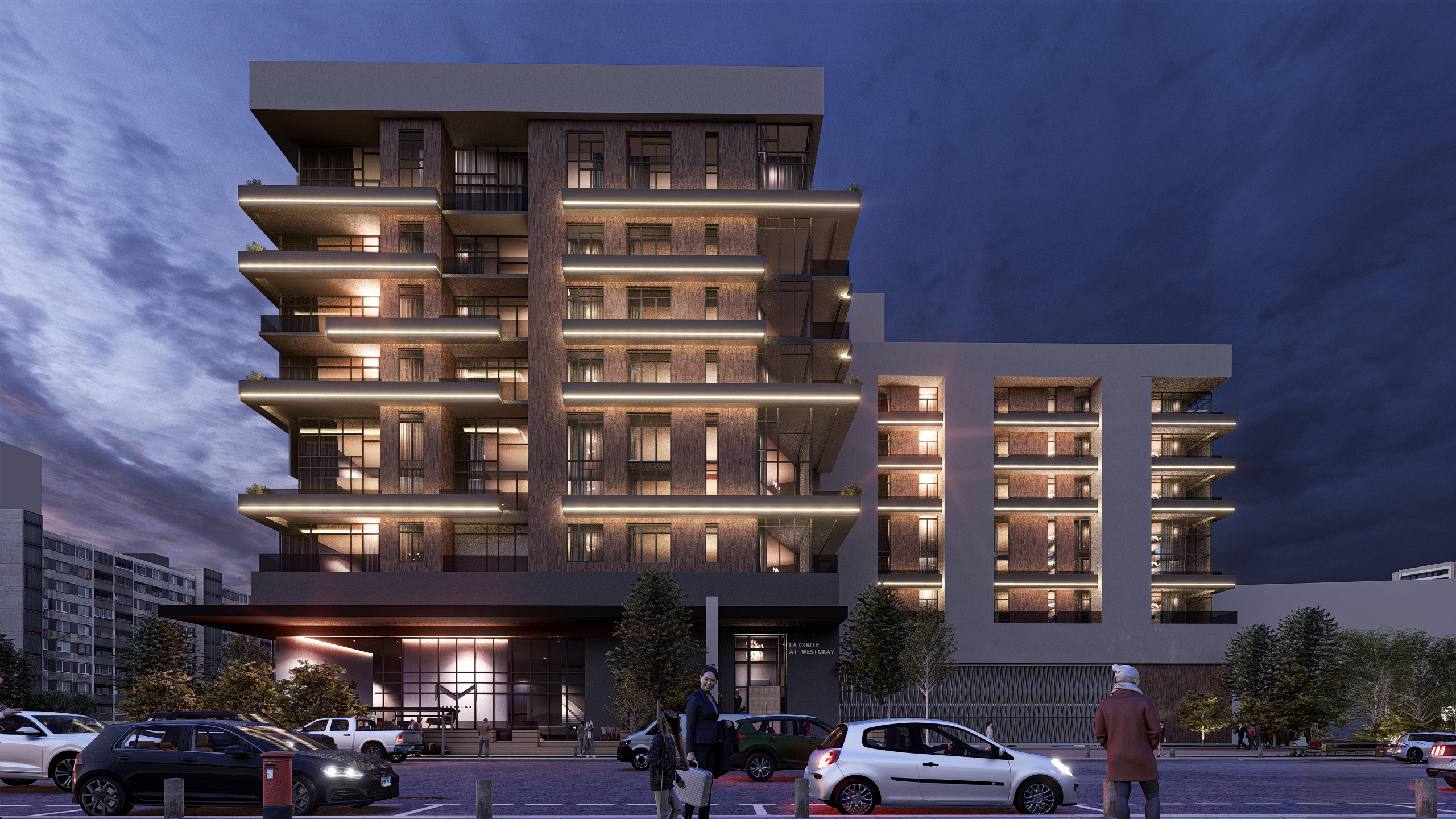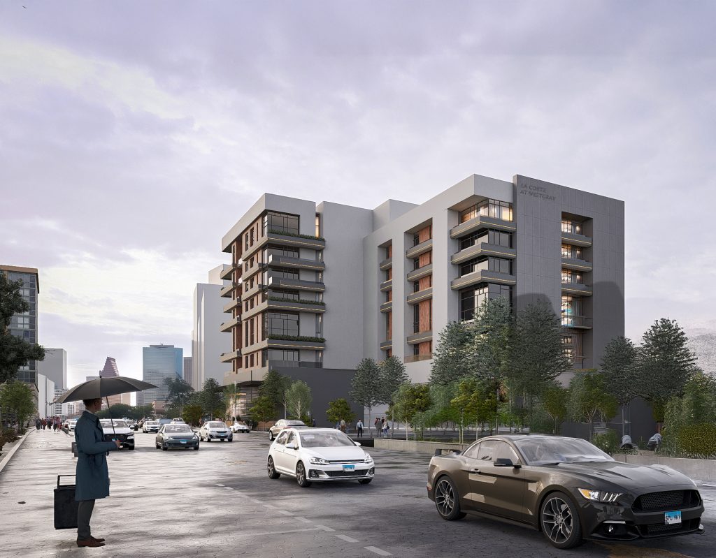 La Corte is a luxury condominium development by CIVE®, located within Houston’s Downtown, Montrose, and River Oaks corridor. The building program combines retail at street level, structured parking, and residential units above, organized to optimize function and flow. Large glass façades and landscaped horizontal elements maximize daylight penetration while providing visual continuity across the exterior. A central courtyard with outdoor amenities adds to the resident experience, while data-driven design strategies improve efficiency, reduce energy demand, and minimize the project’s ecological footprint.